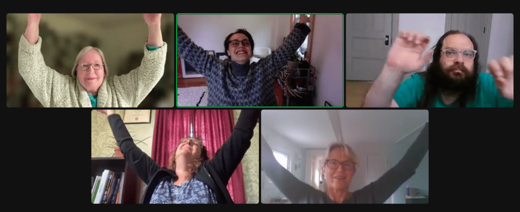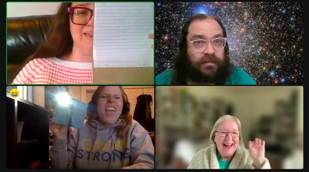 Open to anyone with internet access and a curiosity about how to collaborate theatrically in a virtual setting, the workshop’s online nature made it possible for the majority; the fact that it was online made it possible for them to attend. Though many participants had experience with creative arts in some capacity, only one had ever devised theatre with WAM before. Several made a point to thank WAM for “continuing to offer online opportunities even when so much of the theater community has gone ‘back to normal.’’
